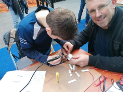 AREXX has also been a regular partner for years and is present during the event with a soldering workshop for youth. Interest was great. The boys and girls worked enthusiastically and very concentrated on the projects we had selected for this year. Projects that also do very well during technology lessons at school: